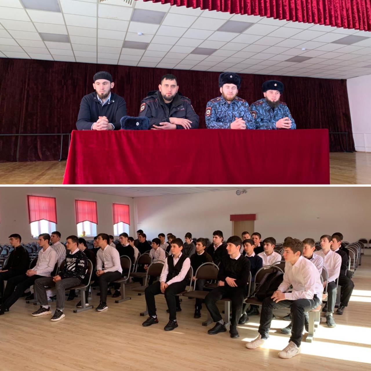 25.02.2021 года в "СОШ-1 с.Автуры" прошла встреча учащихся с сотрудниками территориального отделения по обслуживанию н.п. Лейтенат полиции Алхазуров Ю.Т-А.,младший лейтинат полиции Абубакаро